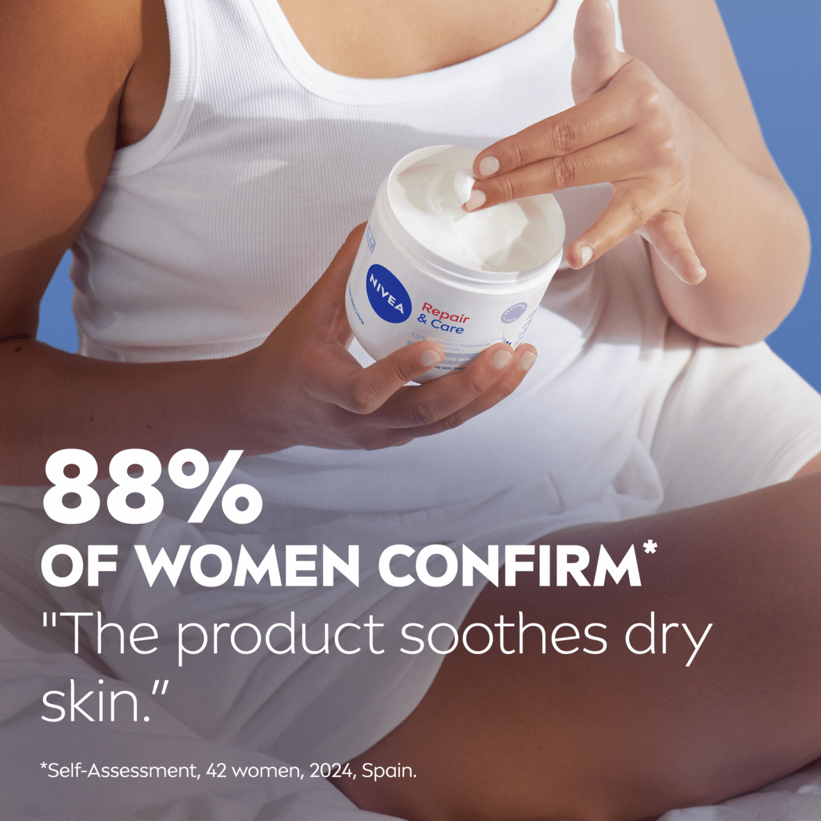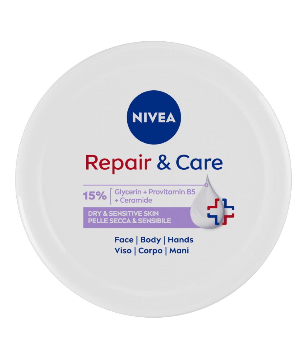 Відкрий для себе універсальний крем NIVEA® «Відновлення та догляд» для сухої та чутливої шкіри — ідеальний для заспокоєння сухої та чутливої шкіри. Його ніжна гіпоалергенна формула забезпечує інтенсивний догляд і заспокоює подразнену шкіру вже з першого застосування.