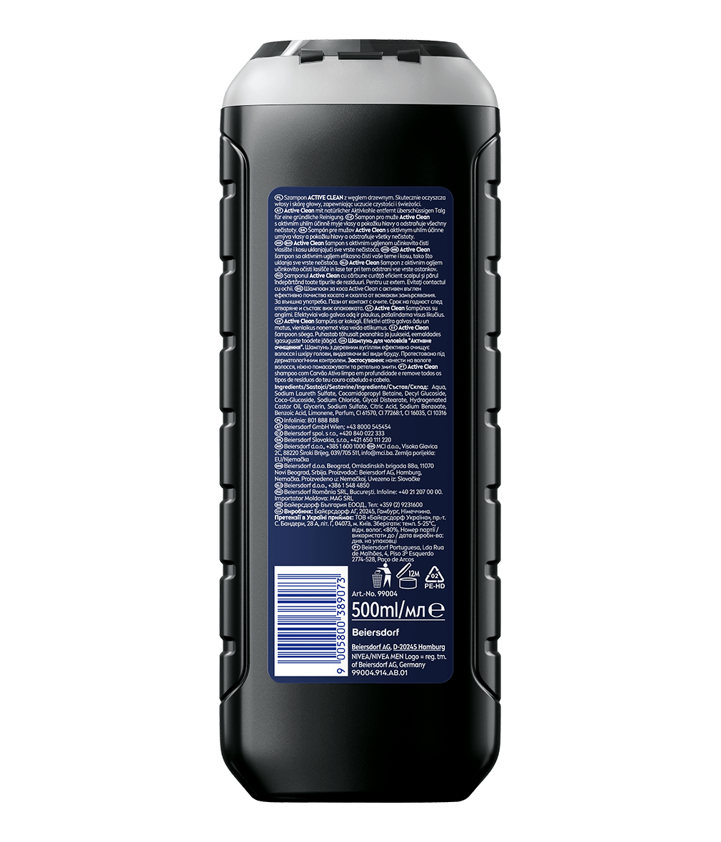 Спеціально створений для чоловіків шампунь для ефективного очищення волосся від усіляких залишків за допомогою сили активного вугілля: шампунь NIVEA MEN "Активне очищення".