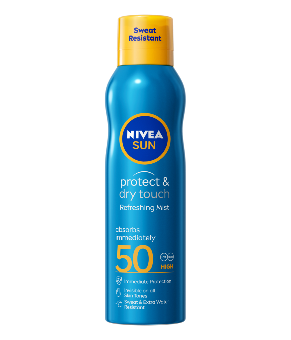 Миттєвий захист від сонячних опіків, який непомітний на всіх відтінках шкіри: NIVEA SUN Сонцезахисний освіжаючий міст "Захист та сухий дотик" SPF 50.